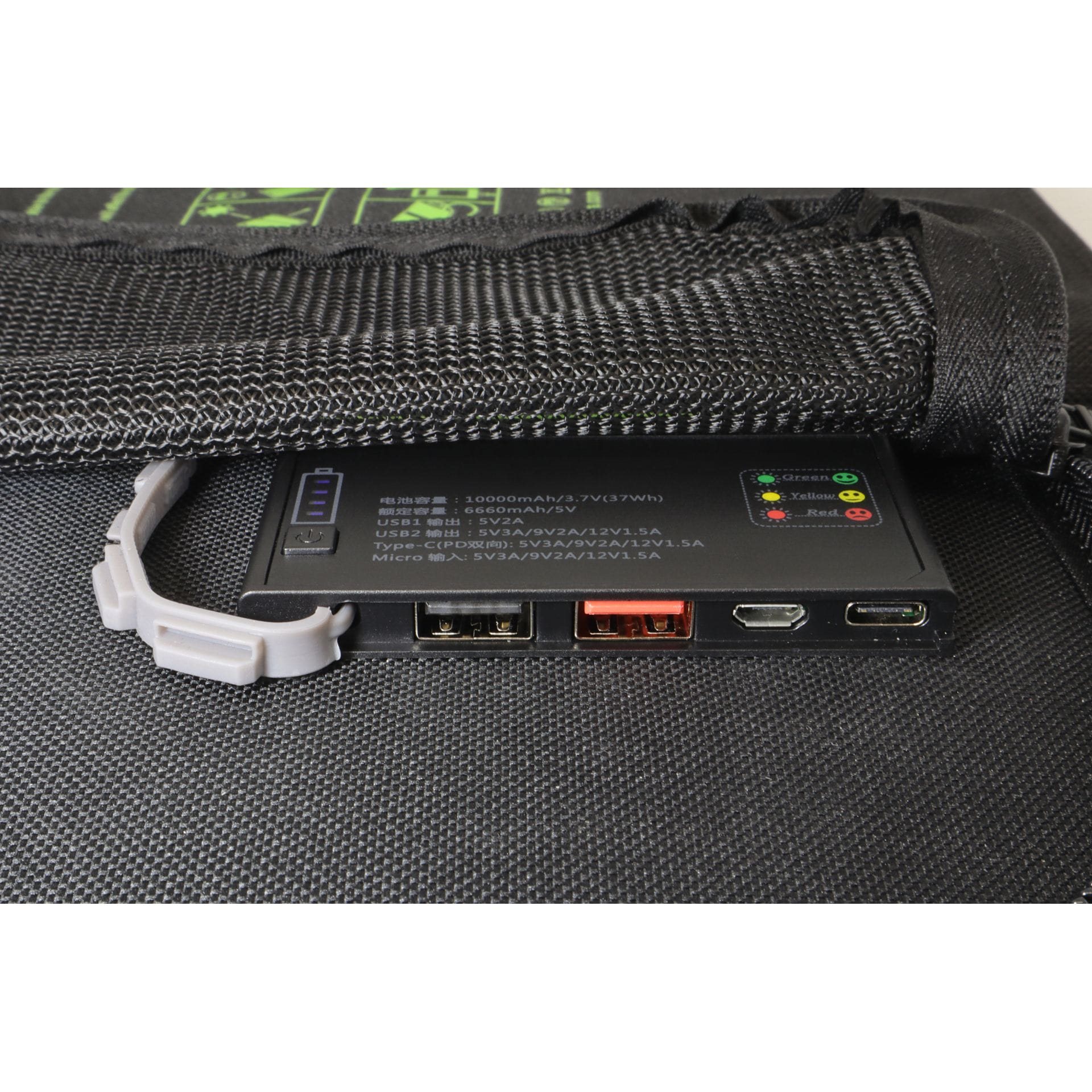 Kompaktowy składany 3-częściowy panel słoneczny z wbudowanym powerbankiem (10.000 mAh) do ładowania urządzeń przez USB lub USB-C – na przykład smartfonów, tabletów czy innych powerbanków. Dzięki wbudowanemu powerbankowi można ładować także bez bezpośredniego światła słonecznego. Panel z monokrystalicznymi ogniwami krzemowymi automatycznie dostosowuje prąd i napięcie dla jak najszybszego i najwydajniejszego ładowania.
