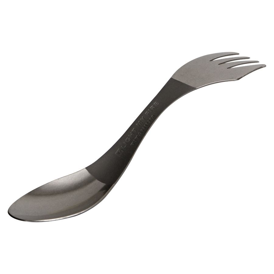 Łyżka, widelec i nóż w jednym (nóż jest częścią widelca). Wykonane z bardzo wytrzymałego i przede wszystkim lekkiego materiału – tytanu. Wymiary: 170 x 39 x 20 mm, waga: 20 g. Więcej informacji