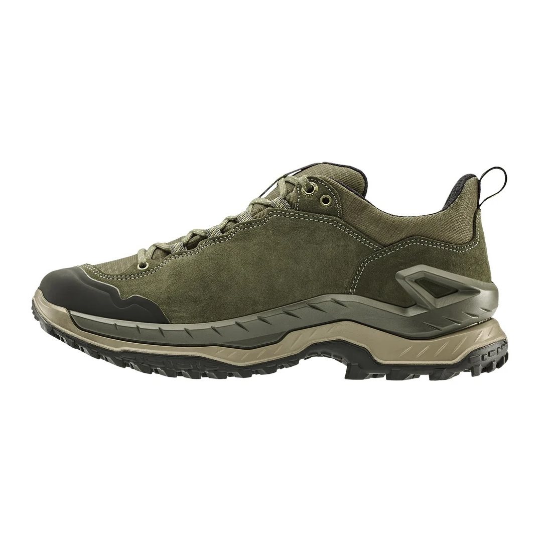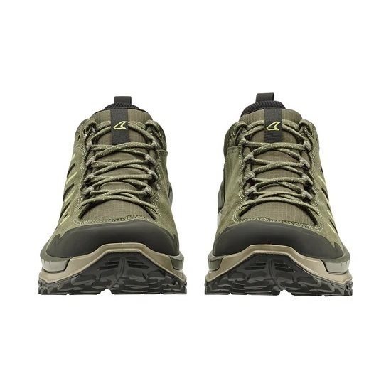 Dynamiczne buty turystyczne INNOVO GTX LO wyróżniają się komfortowo amortyzowaną podeszwą środkową LOWA® DYNAPU® z podwójnym wtryskiem oraz zmodernizowaną podeszwą z wyraźnym bieżnikiem. Zapewnia ona optymalną przyczepność dzięki wielokierunkowym wypustkom i większej powierzchni kontaktu z podłożem. Ten model podnosi komfort wędrówki na nowy poziom i wykorzystuje trwałe połączenie zamszu i materiału tekstylnego, wodoodporną membranę GORE-TEX oraz szereg oddychających paneli. Praktycznymi elementami są także podwyższona ochrona palców oraz pętle ułatwiające zakładanie i zdejmowanie butów. Dzięki solidnej konstrukcji podeszwy oraz elastycznej, a zarazem wytrzymałej cholewce INNOVO GTX LO stanowi zrównoważone połączenie stabilności, wsparcia i dynamiki.