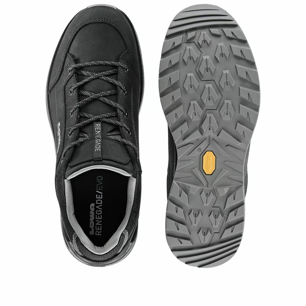 W 2024 roku LOWA wprowadza kolejną innowację do popularnego i najlepiej sprzedającego się na świecie modelu RENEGADE. Podczas produkcji nowego modelu RENEGADE EVO do wykonania cholewki użyto mniej pojedynczych elementów skóry. W sznurowadle usunięto ostatni haczyk, dzięki czemu sznurowadło przechodzi tylko przez oczka. Zmianie uległa również podeszwa, która ma teraz lepszą przyczepność do podłoża i bardziej elegancki wygląd. Buty nadają się teraz zarówno na trekking w terenie, jak i na zwiedzanie miasta.