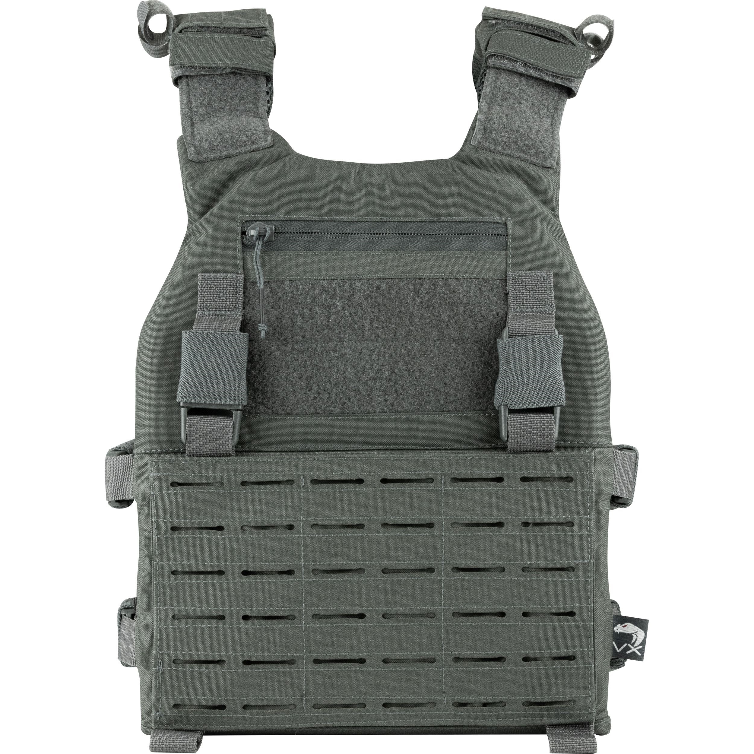 Przednia i tylna strona nośnika pokryta jest siatką MOLLE/PALS, która umożliwia zamocowanie szeregu kompatybilnego wyposażenia. Przedni panel siatki można w razie potrzeby wymienić lub zdjąć i nie używać. Nad przednim panelem z mocowaniem MOLLE znajduje się panel z rzepem VELCRO na naszywki oraz mała płaska kieszeń administracyjna odpowiednia na mniejsze dokumenty. Dodatkową możliwość zamocowania dodatkowego wyposażenia oferują klamry FASTEX kompatybilne z systemem VX.