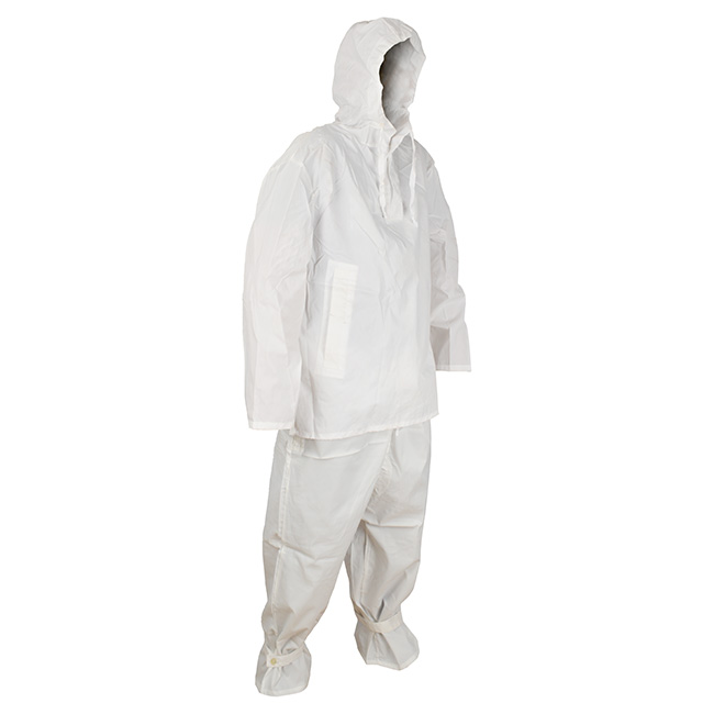 Zestaw zawiera kurtkę z kapturem i spodnie. Jest to nowy przedmiot do długotrwałego przechowywania. Kombinezon jest używany do kamuflażu na śniegu i jest przeznaczony jako odzież wierzchnia.