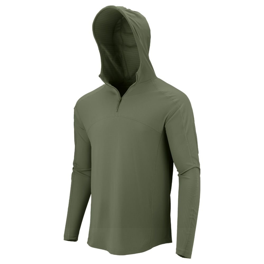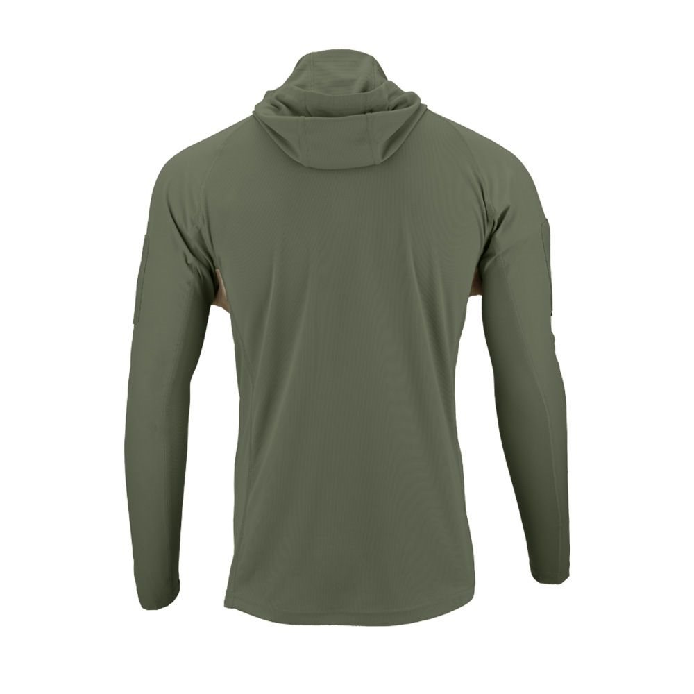 Trident to lekka i wygodna koszulka taktyczna stworzona do noszenia w cieplejszych warunkach klimatycznych. Do jego produkcji użyto oddychającego i odprowadzającego wilgoć materiału, który pomaga złagodzić przegrzanie ciała nawet podczas najgorętszych dni i najbardziej wymagających aktywności. Ochrona UPF 50 w połączeniu z długimi rękawami i kapturem niezawodnie chroni przed słońcem.