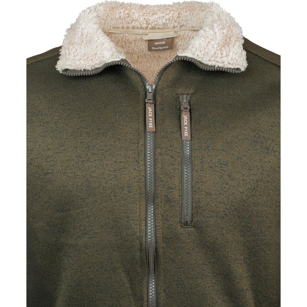 Ciepła kurtka SCANDINAVIAN SHERPA angielskiego producenta JACKPYKE jest wykonana z przyjemnego materiału polarowego z wewnętrzną warstwą ocieplającą ze sztucznego futerka, a swoją fakturą przypomina klasyczny sweter z dzianiny.