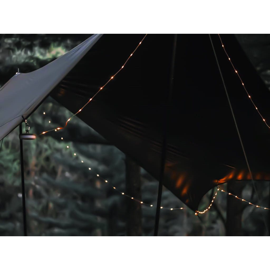 - Lampa główna + 10-metrowa łańcuch świetlny – połączenie oświetlenia funkcjonalnego i nastrojowego