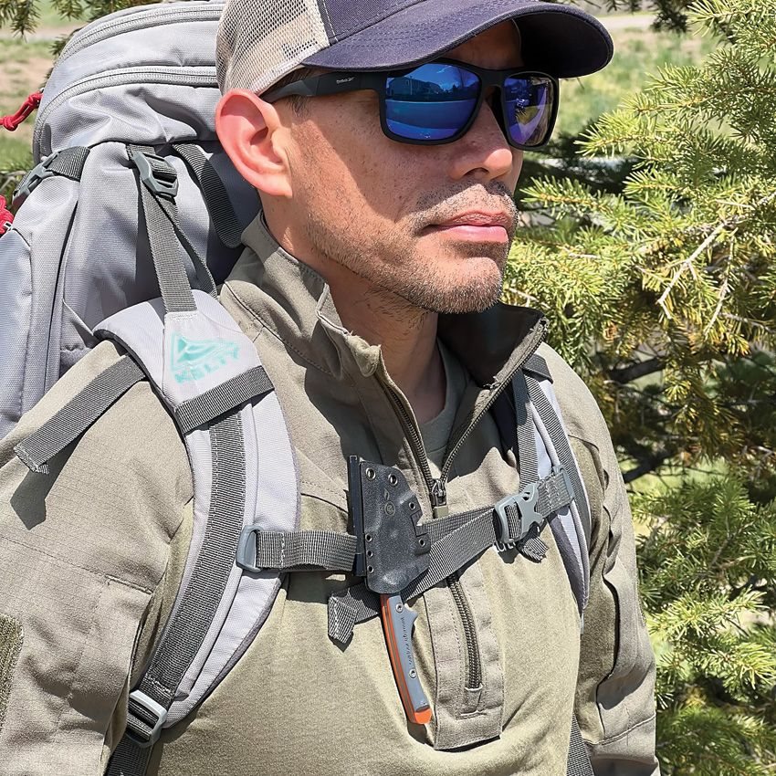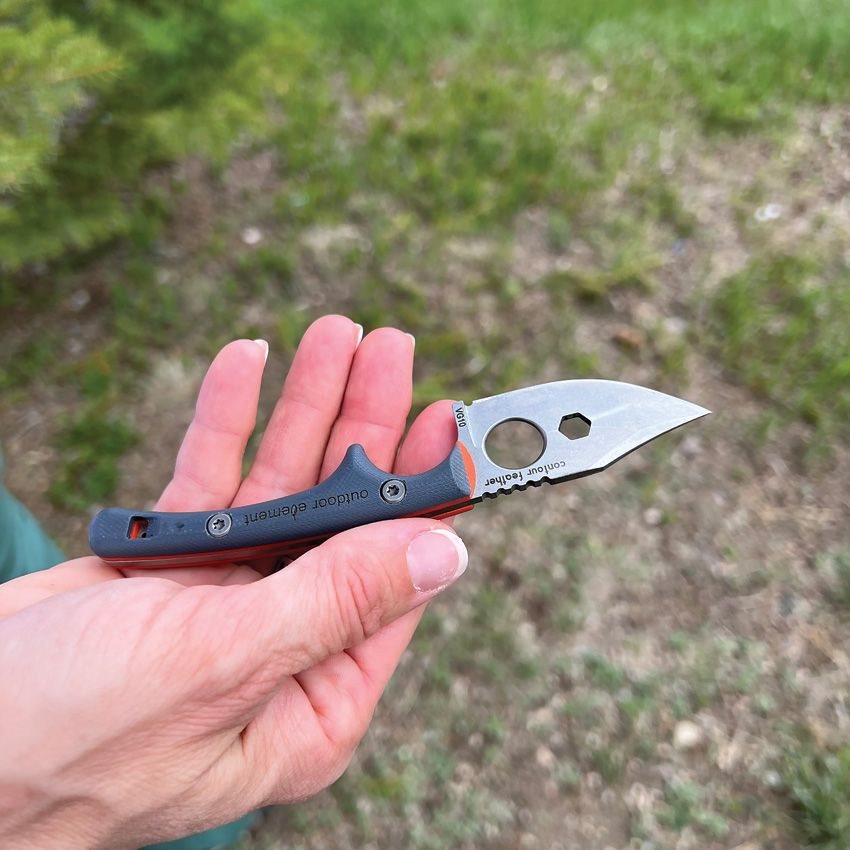 Nóż pełnotangowy z ostrzem stałym i nietypowo cienką rękojeścią. Ostrze z gładkim grzbietem wykonane jest z wysokiej jakości stali VG-10 z wykończeniem stonewash. W środkowej części ostrza znajduje się otwór sześciokątny i większy otwór na palec. Dwukolorowa rękojeść jest wykonana z wytrzymałego materiału G10, a jej kształt został zaprojektowany tak, aby zapewnić maksymalną pewność chwytu w każdej sytuacji. Do noża dołączone jest plastikowe etui z wbudowaną zapalniczką, ostrzałką i gwizdkiem.