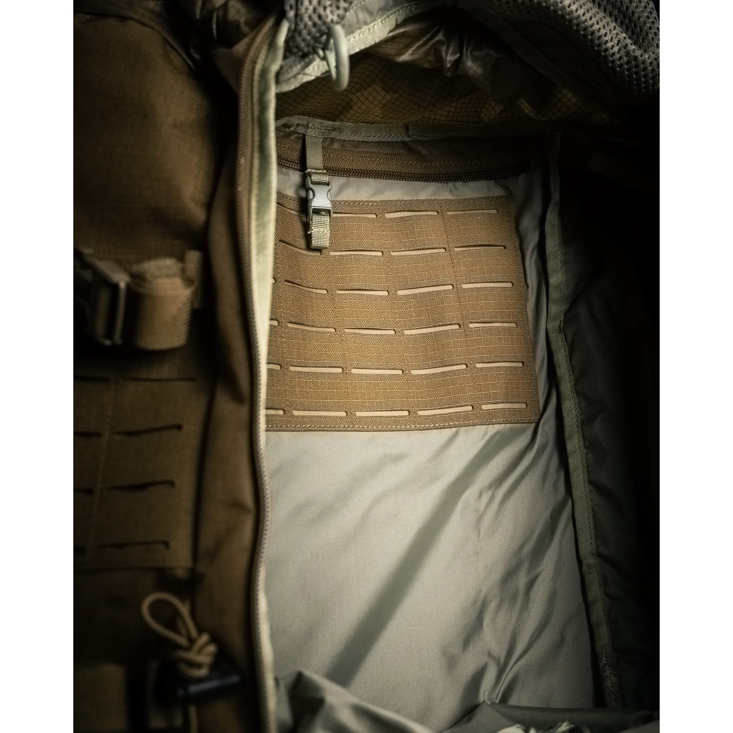 Aby ułatwić organizację, plecak posiada z zewnątrz dwie przednie kieszenie dostępne za pomocą dwukierunkowych zamków błyskawicznych oraz dwie boczne kieszenie wykonane z częściowo elastycznego materiału. Łącznie cztery regulowane paski boczne można wykorzystać do szybkiej i łatwej kompresji plecaka. Wnętrze komory głównej jest dostępne poprzez przedni otwór lub górny rękaw rolkowy zapinany na klamrę Fastex. Komora główna jest podzielona na dwie części za pomocą wewnętrznej przegrody; wewnątrz znajduje się pętla do umieszczenia worka na wodę oraz panel z wycinanymi laserowo modułowymi mocowaniami, służącymi np. do zamocowania radiostacji.