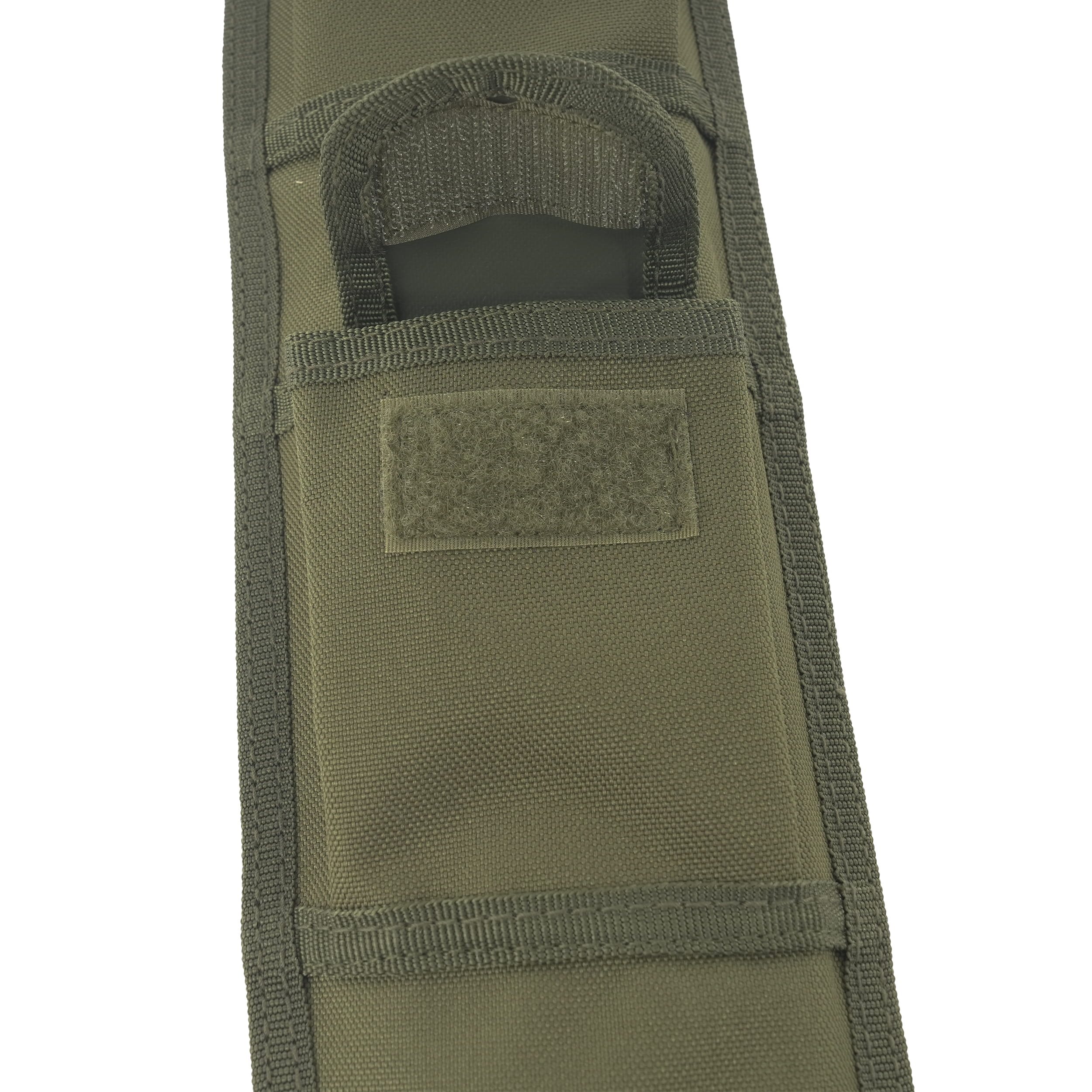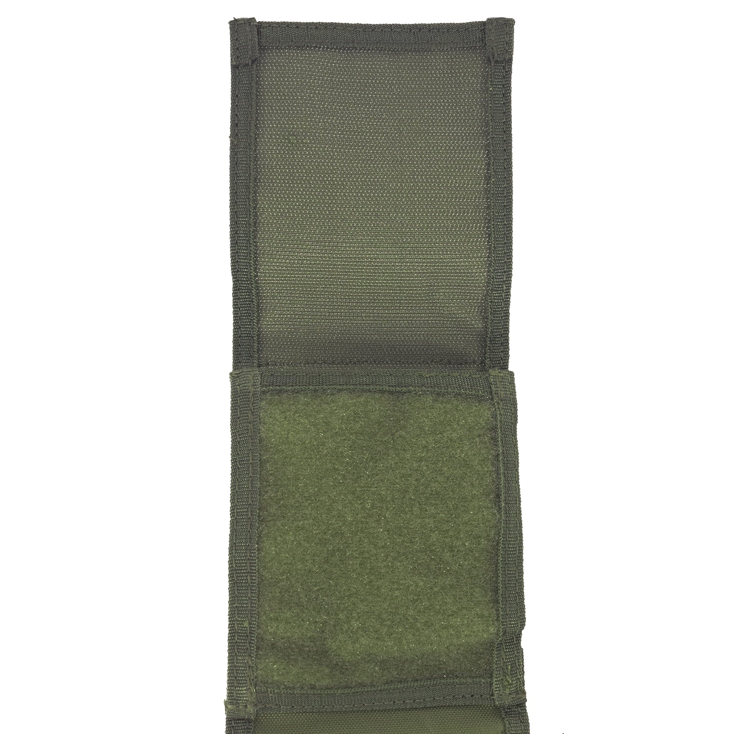 Pochwa z 4 uchwytami MOLLE, z przodu 2 kieszenie z zakładką, 2 pierścienie D do zawieszenia pochwy. Materiał: poliester.