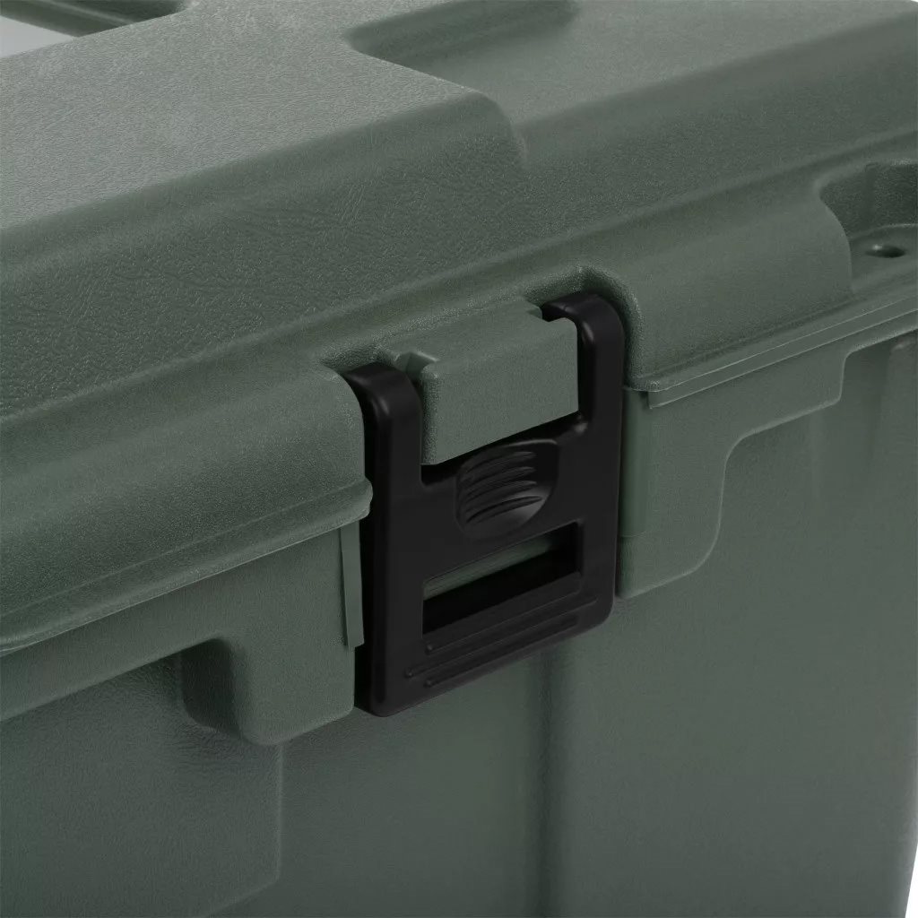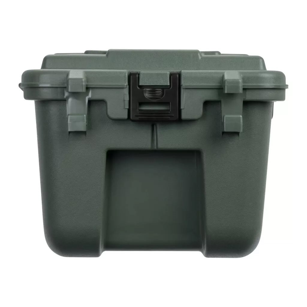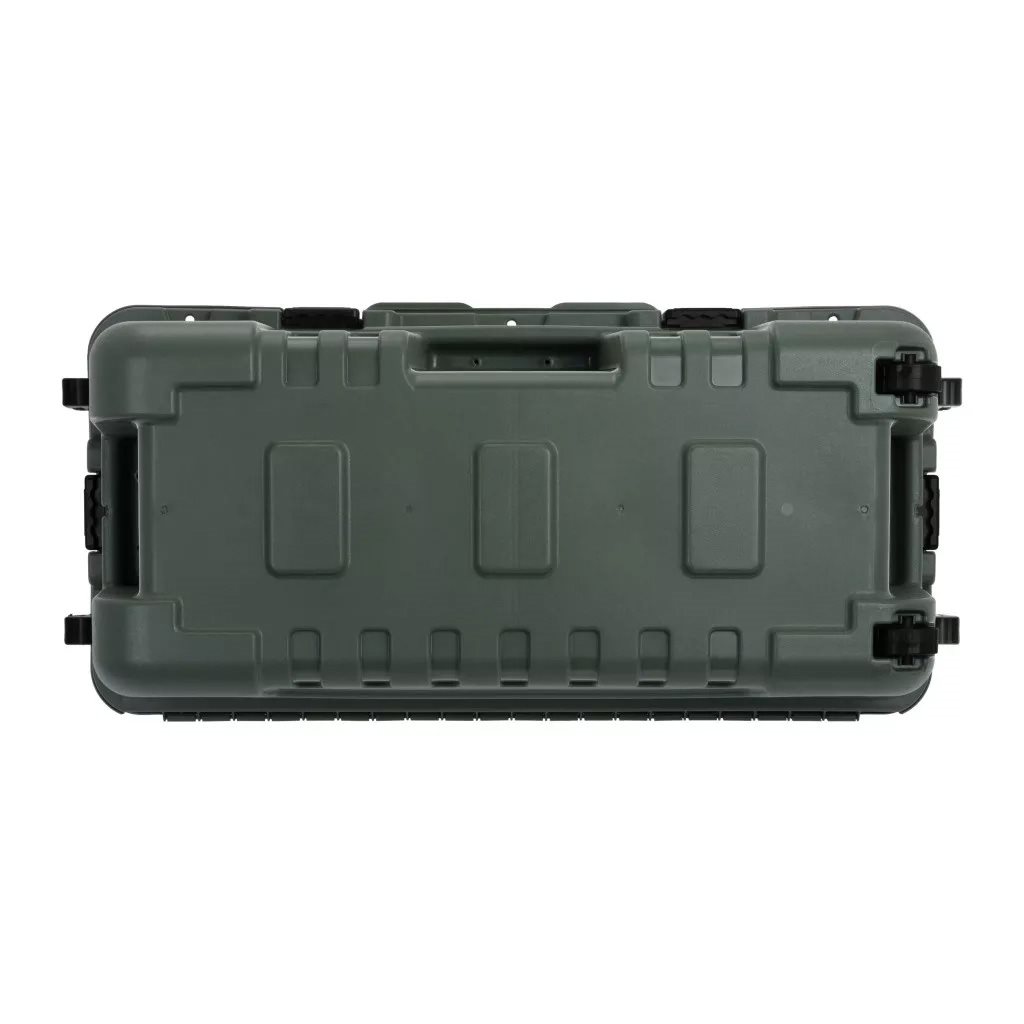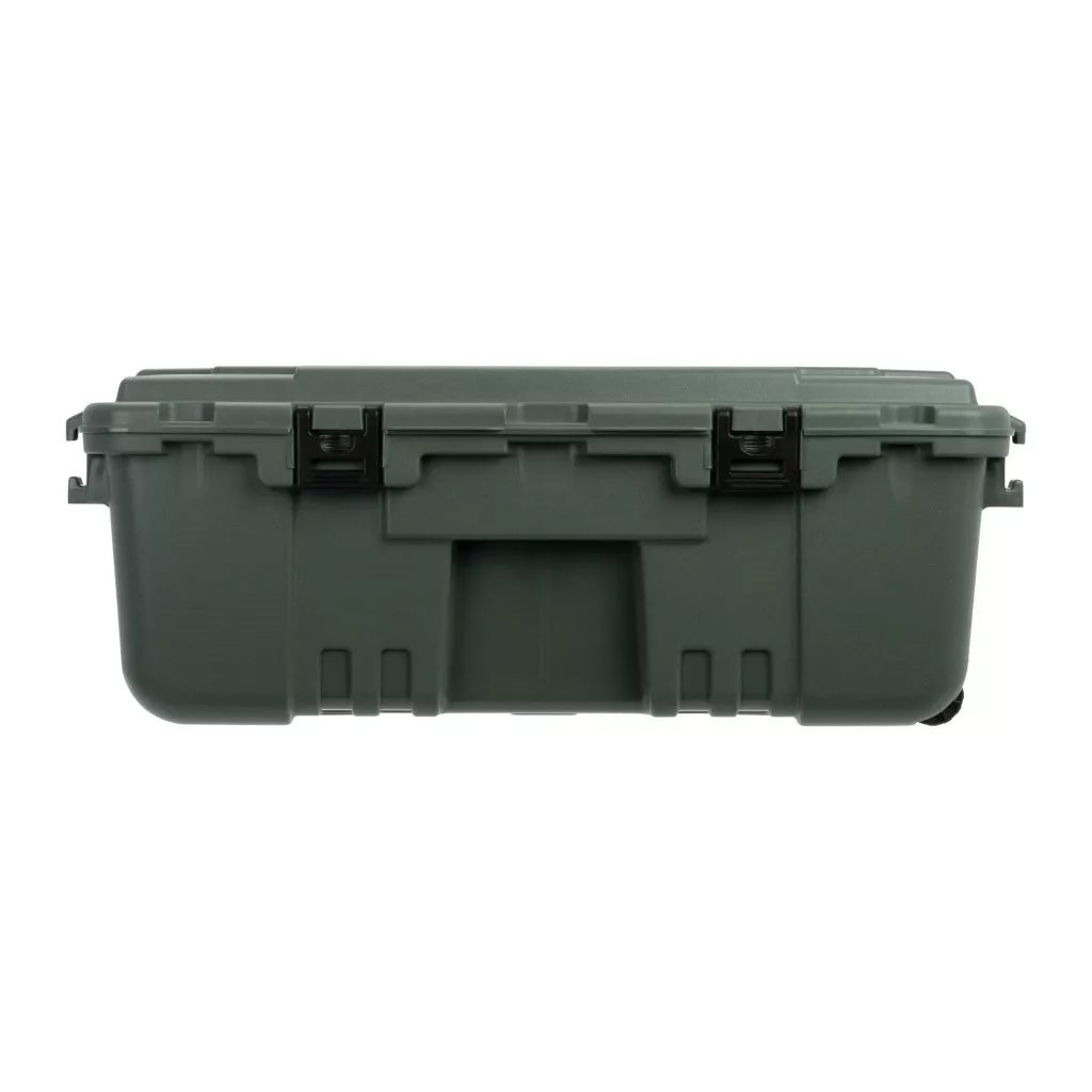 Praktyczna skrzynia transportowa firmy Plano, solidna, a jednocześnie, biorąc pod uwagę jej rozmiar, stosunkowo lekka. W pełni odchylana pokrywa ułatwiająca obsługę. W wygodnym transporcie pomagają kółka umieszczone z jednej strony. Łącznie trzy otwory na zamki w pokrywie.