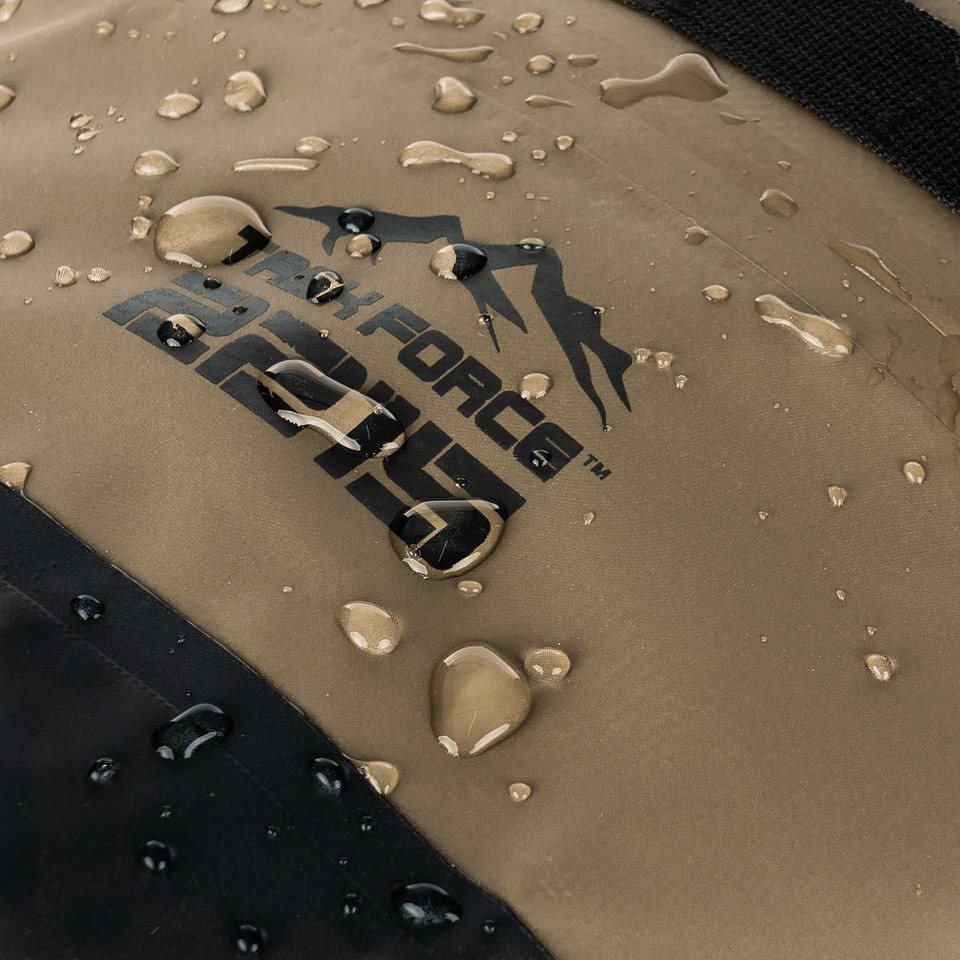 Nieprzemakalna torba odpowiednia do uprawiania sportów wodnych. Do jej produkcji użyto nieprzemakalnego materiału PVC 500D. Dla wygodnego przenoszenia worek wyposażono w regulowany i odpinany pasek. Dostęp do wnętrza zapewnia górna roleta zapinana na zatrzask. Przednia część obszyta jest taśmą MOLLE/PALS i wyposażona w płaską kieszeń zapinaną na zamek błyskawiczny.