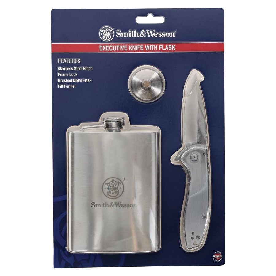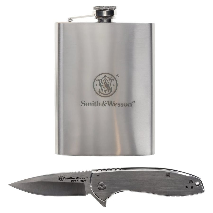 Smith & Wesson® zestaw nóż składany + piersiówka + lejek